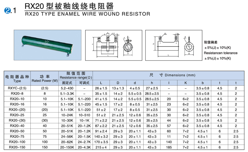 • RX20型被釉線繞電阻器